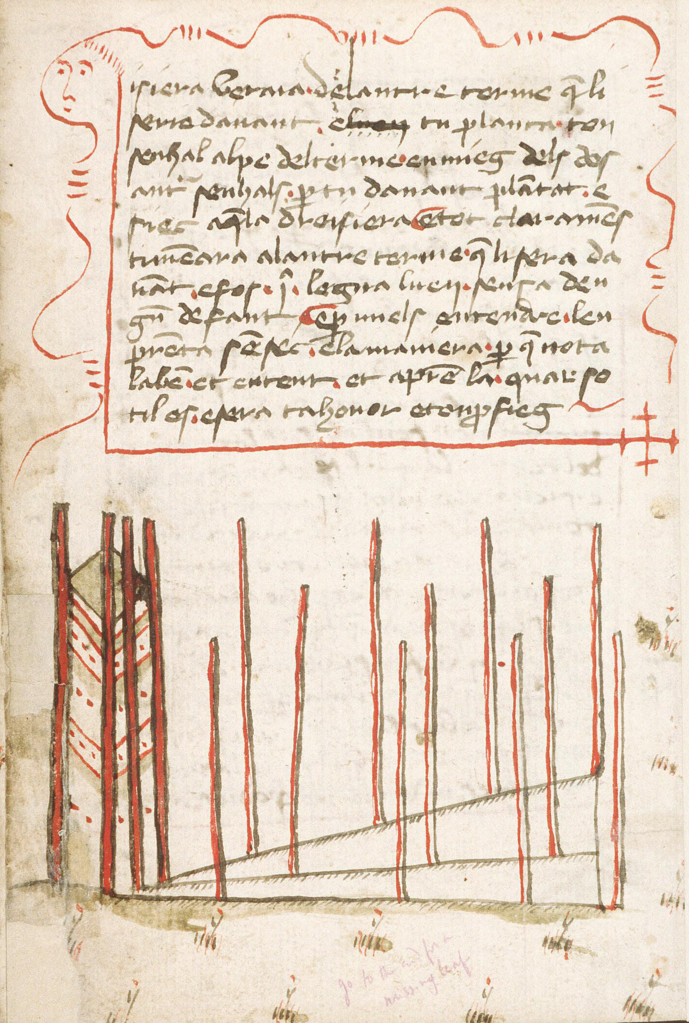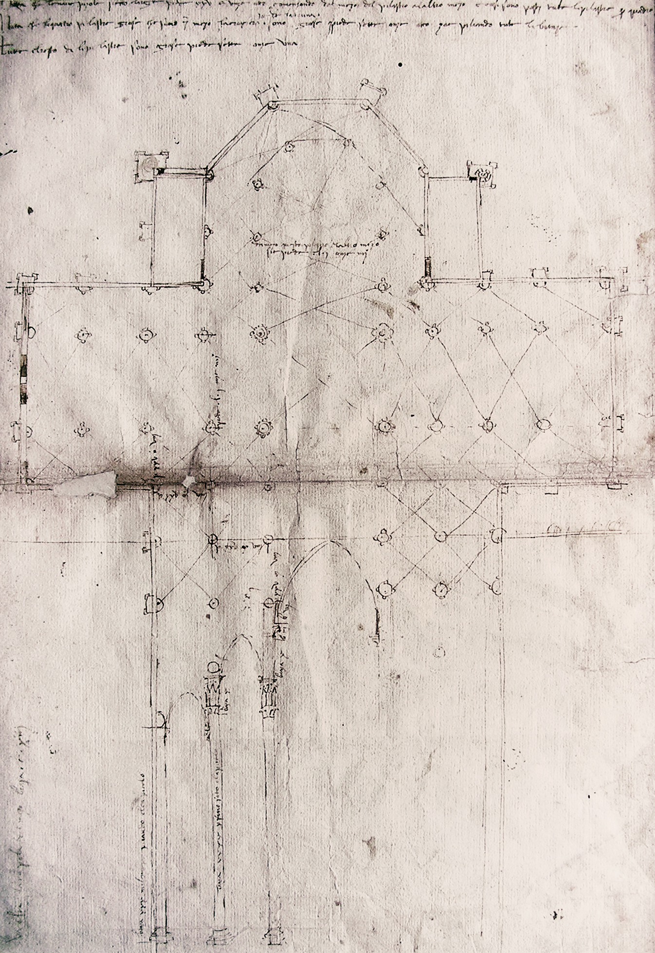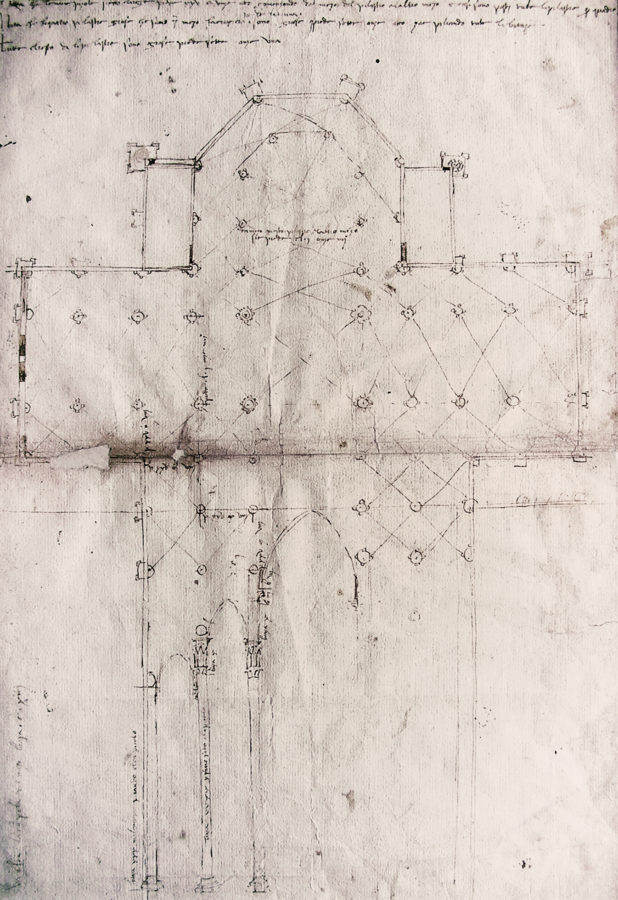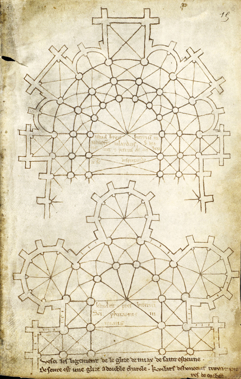 Il en est de même pour le relevé géométrique des bâtiments existants. Alors que les croquis du XIIIe siècle ne permettent pas de faire correspondre le plan d’un bâtiment et sa coupe ; on trouve au XIVe siècle des premiers dessins qui les mettent en correspondance.