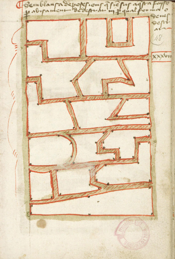 Mais à la fin du Moyen-Âge, la manière d’appréhender les questions géométriques est encore assez différente de celle que nous avons aujourd’hui. Elles relèvent d’une série de savoir-faire, de procédés géométriques transmis dans différents métiers, appelés géométrie pratique. Les relevés des arpenteurs décrivent sommairement des sites, mais ils n’est pas encore possible de les assembler en cartes cohérentes d’un point de vue géométrique.