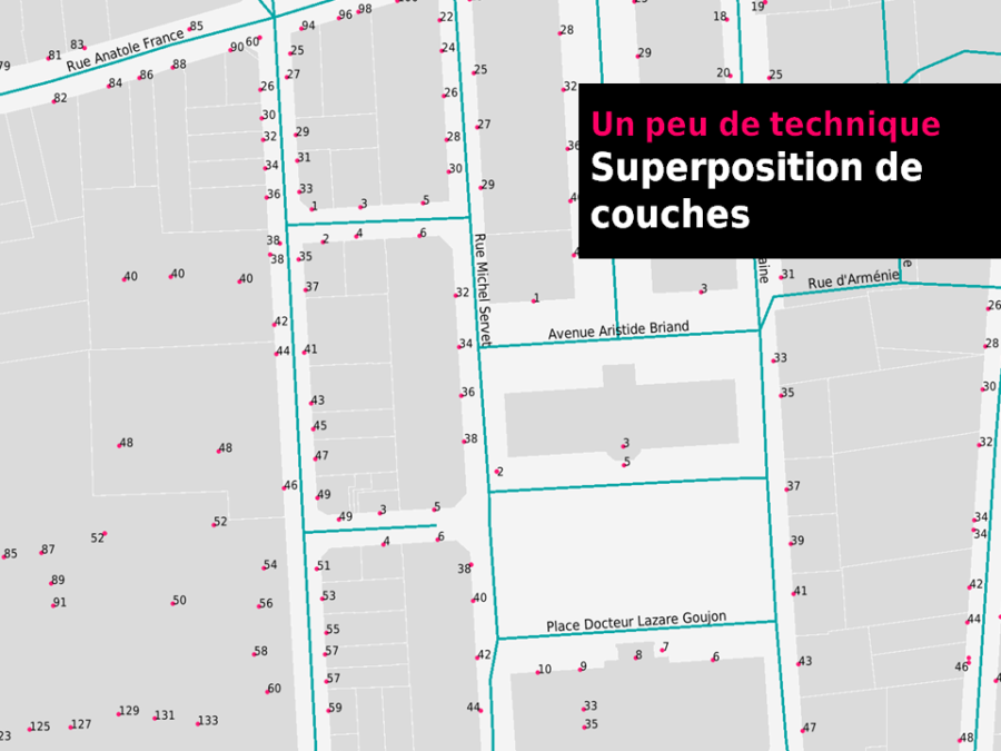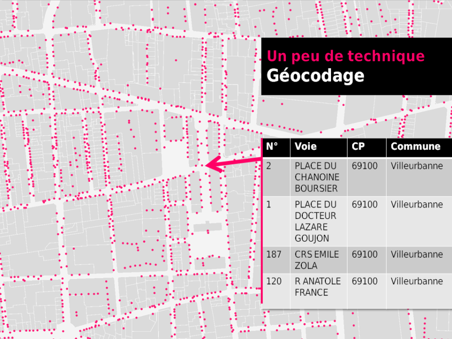 Même si cela ne se voit pas directement, cette simple opération suppose l’existence d’un système de géocodage : il faut que des points d’adresse soient situés sur une carte et que leur soit associée l’adresse écrite en toutes lettres.